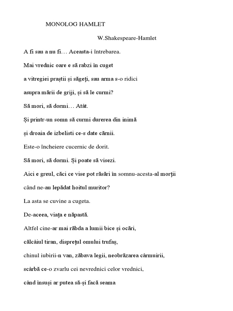 Student La Litere A Fi Sau A Nu Fi William Shakespeare