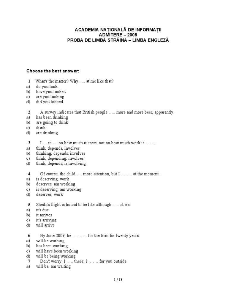 Academia Nationala De Informatii Subiect Limba Engleza Licenta
