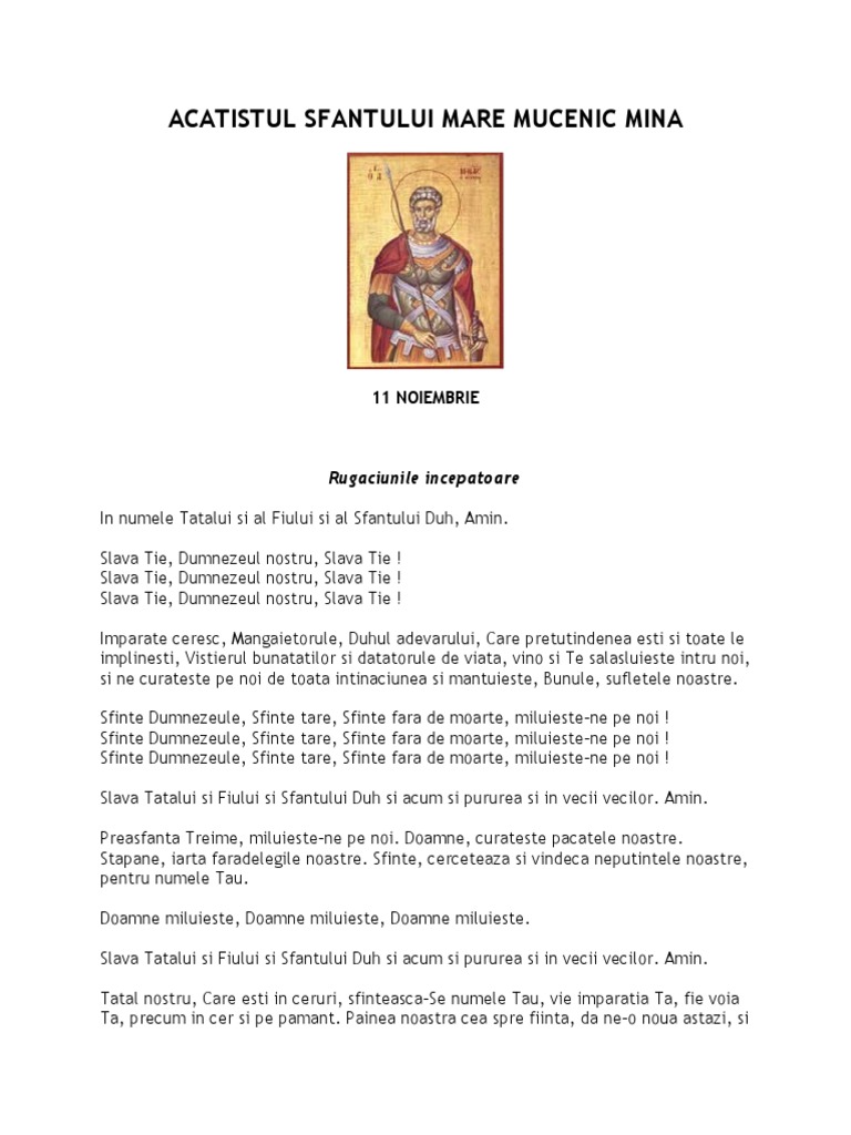 Acatistul Sfantului Mare Mucenic Mina 11 Noiembrie