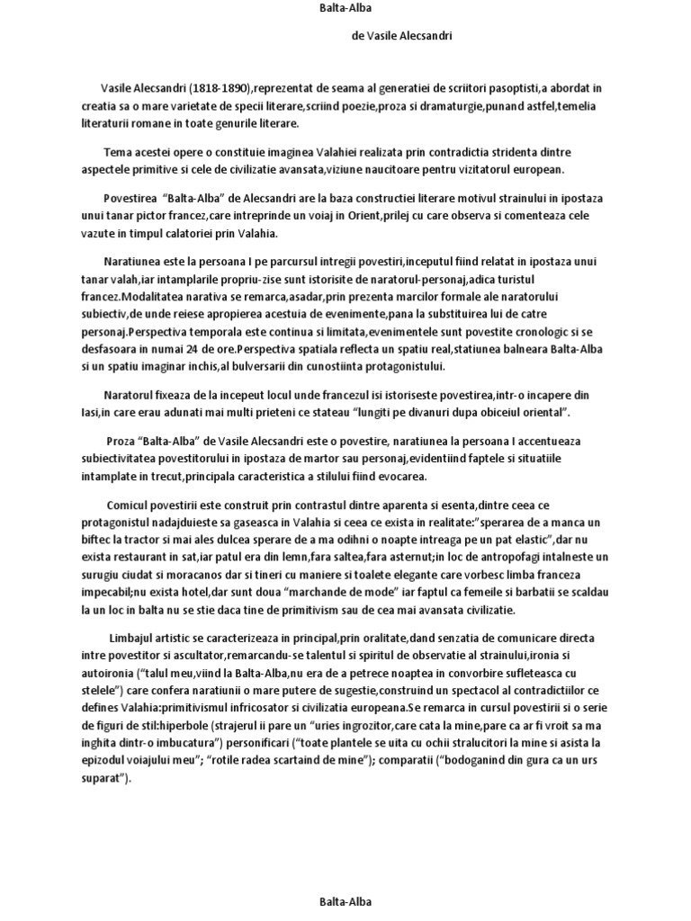 Povestire Balta Albă De Vasile Alecsandri Iarăsi Scoală