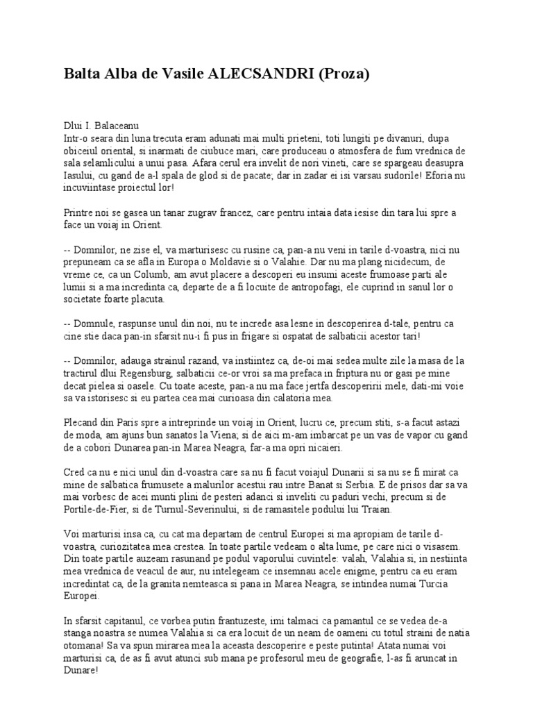 Balta Alba Vasile Alecsandri Blogul Giuliei