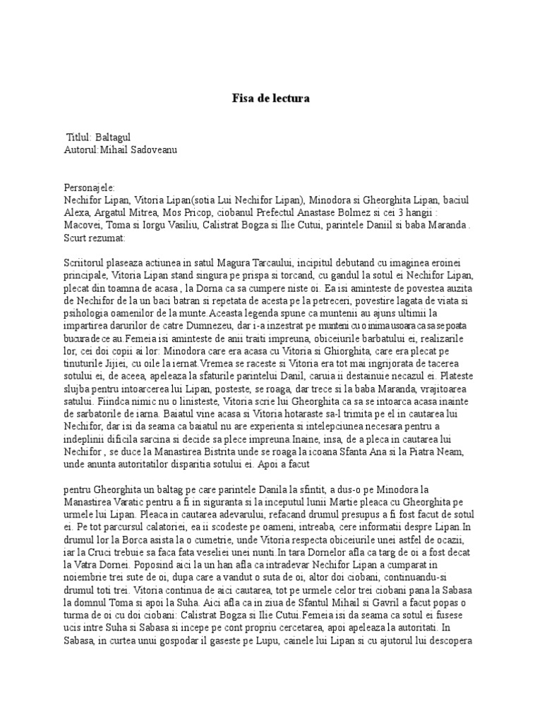 Baltagul Fisa De Lectura