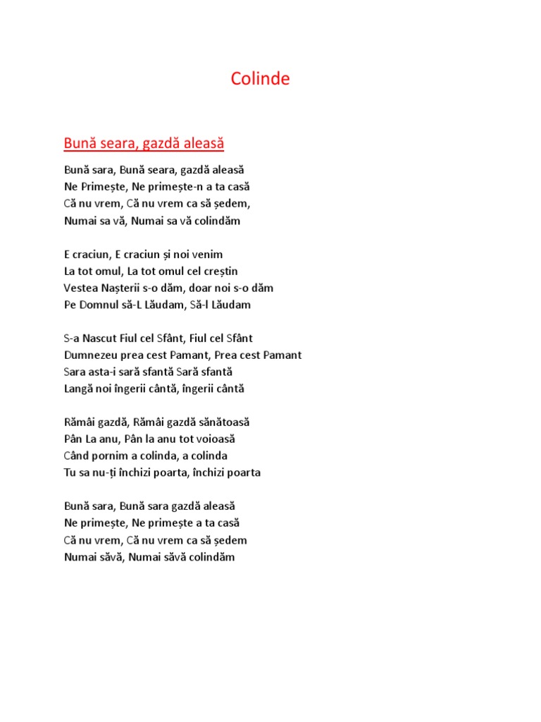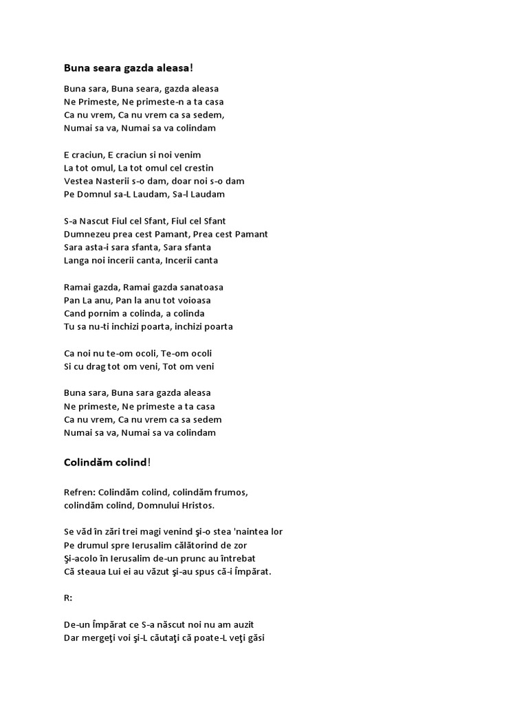 Colind Buna Sara Buna Seara Gazda Aleasa Docx