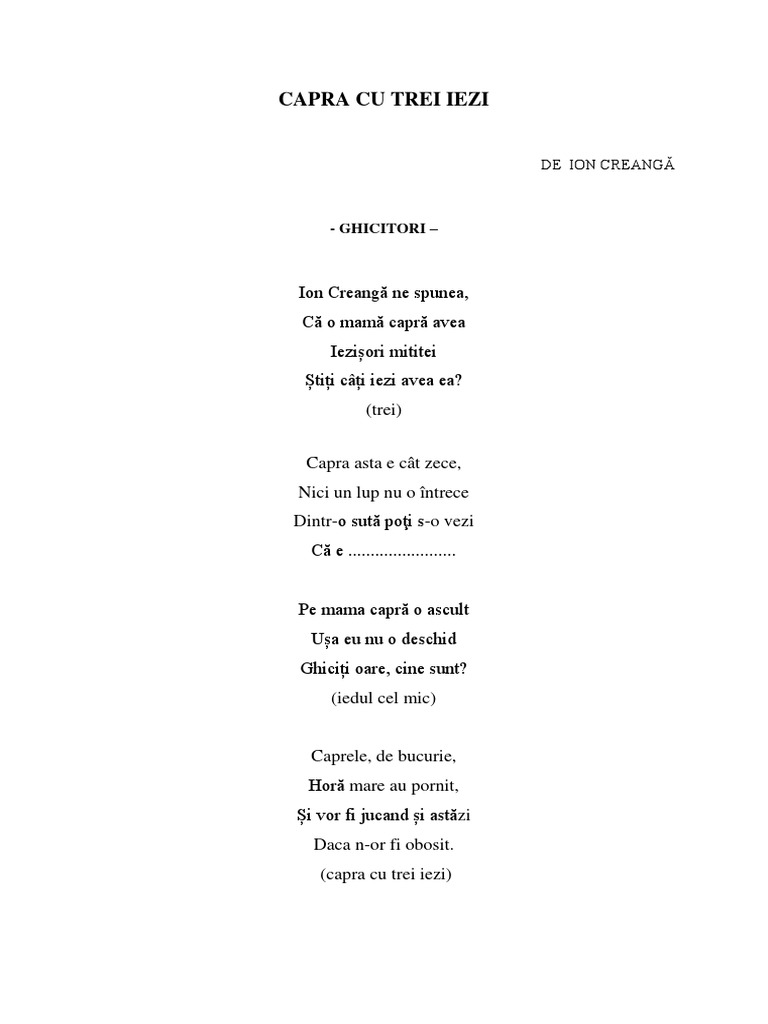 Intr o zi capra cheama toti iezii de pe afara si le zice. Iedul cel mare și cu cel mijlociu dau prin băț de obraznici ce erau. învăţământ preşcolar domeniul estetic şi creativ dec sărbători tradiţii grupa mare. Iară cel mic era harnic și cuminte.