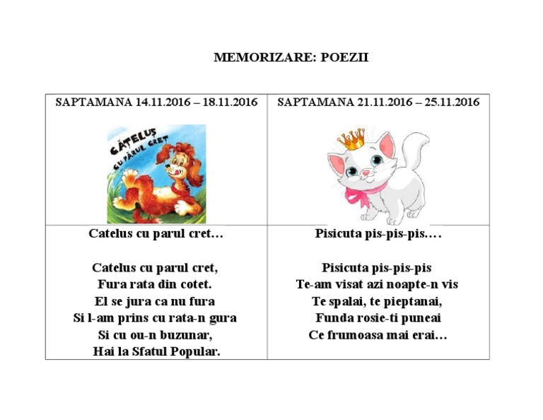 Poezii Catelus Cu Parul Cretpisicuta Pis Pis Pis Docx