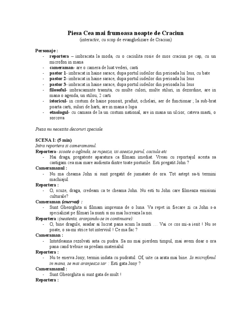 Sceneta Cea Mai Frumoasa Noapte De Craciun Docx Document