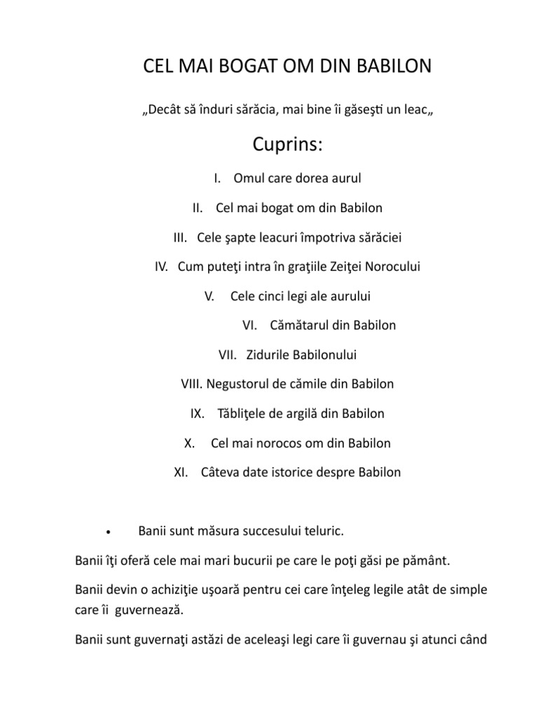Rezumat Cel Mai Bogat Om Din Babilon George S Clason Angel Raducanu Coach