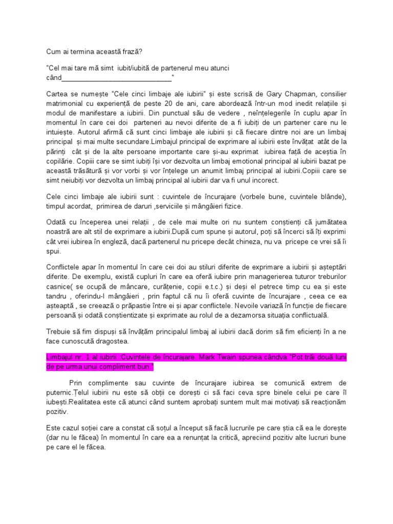 Cele 5 Limbaje Ale Iubirii Rezumat