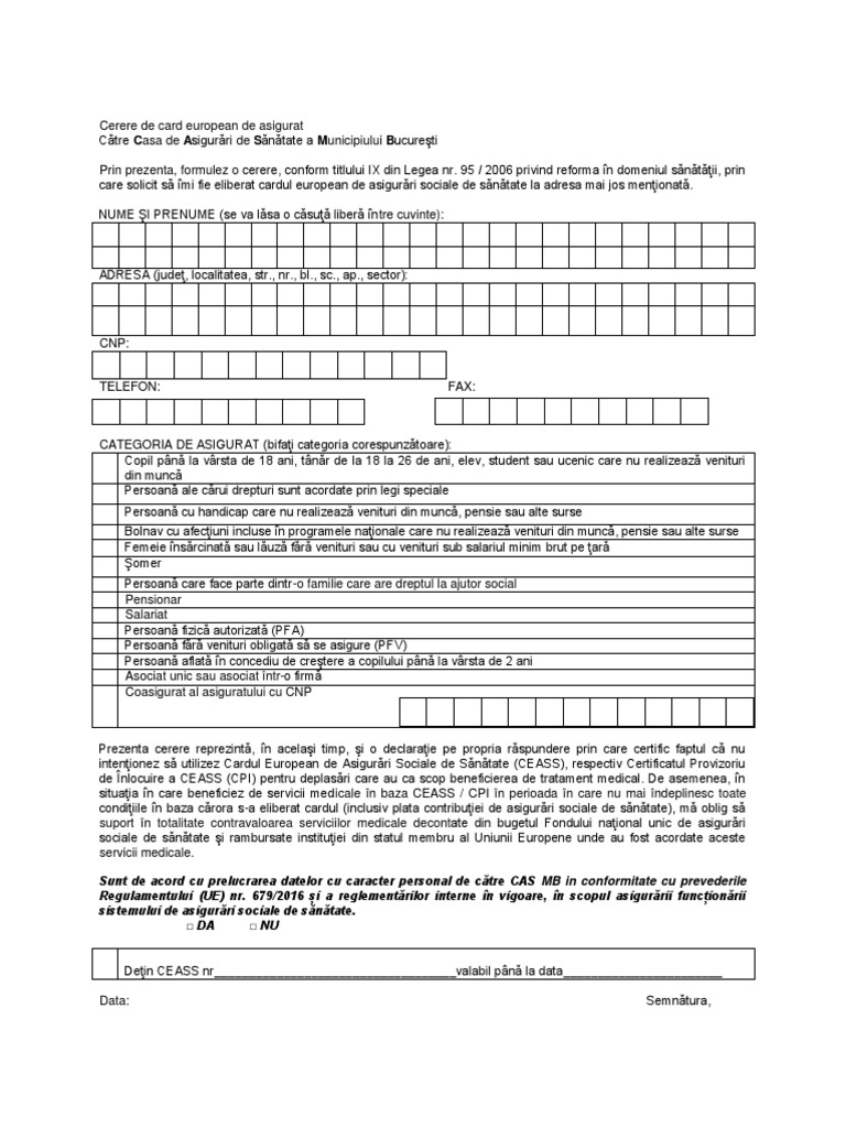 Cerere Tip Pentru Eliberarea Cardului European De Asigurări