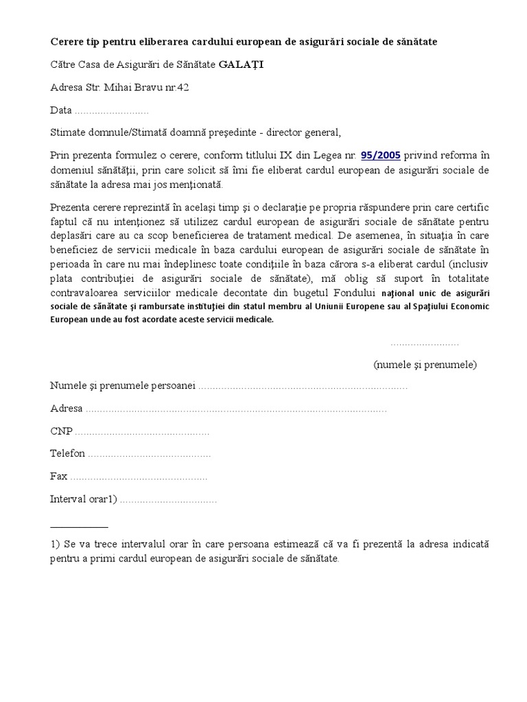 Cerere Tip Pentru Eliberarea Cardului European De Asigurări