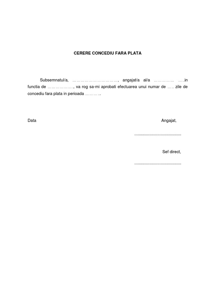 Cerere Concediu Fara Plata Pdf Document