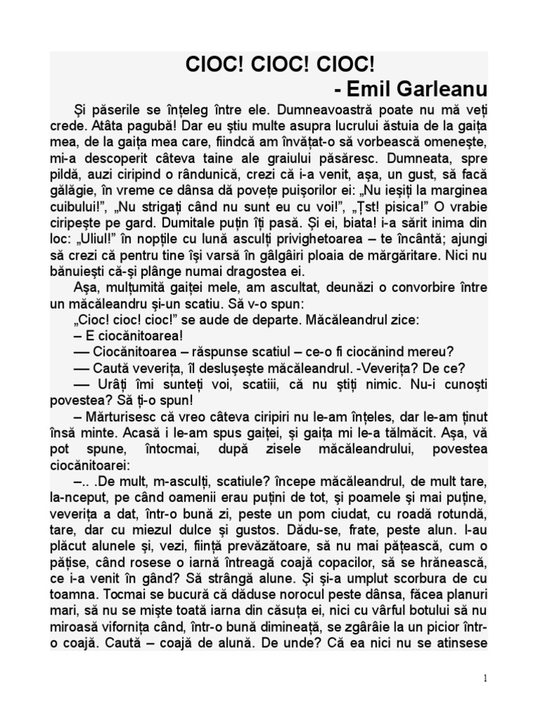 Cioc Cioc Cioc De Emil Garleanu Anideșcoală Ro