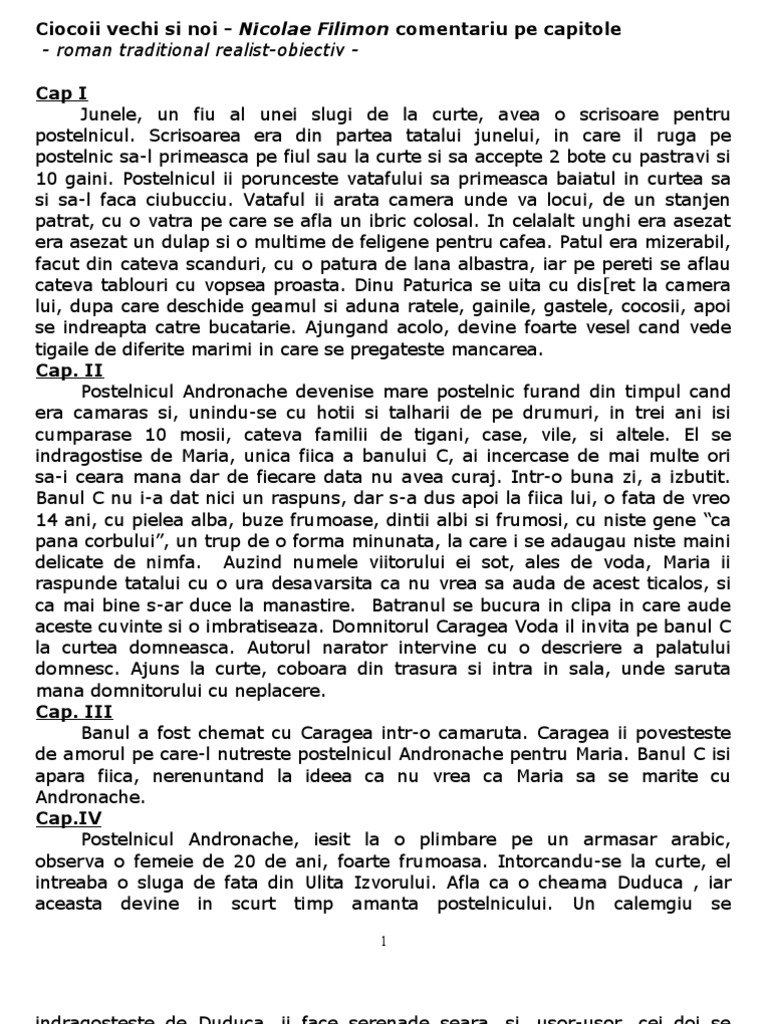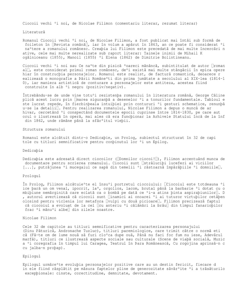 Ciocoii Vechi Si Noi De Nicolae Filimon Comentariu