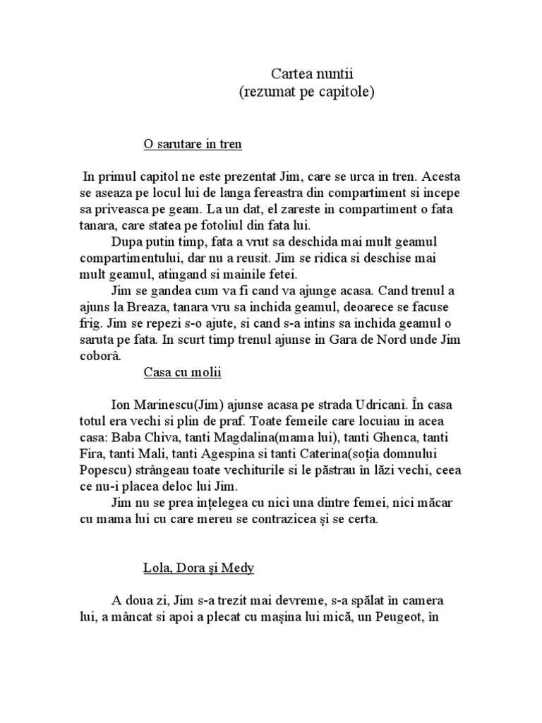 Cartea Nuntii Rezumat Pe Capitole