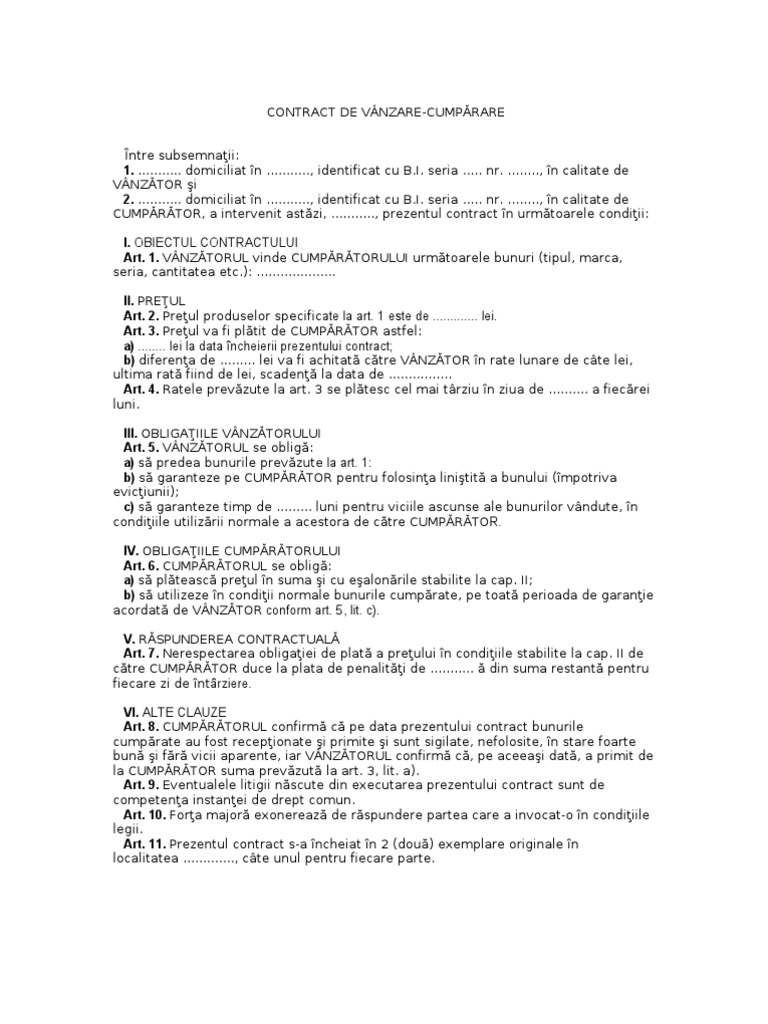 Model Contract Vanzare Bunuri Pf Pf