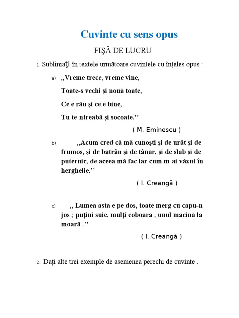 Fisa De Lucru Cuvinte Cu Inteles Opus Cl Ii 1
