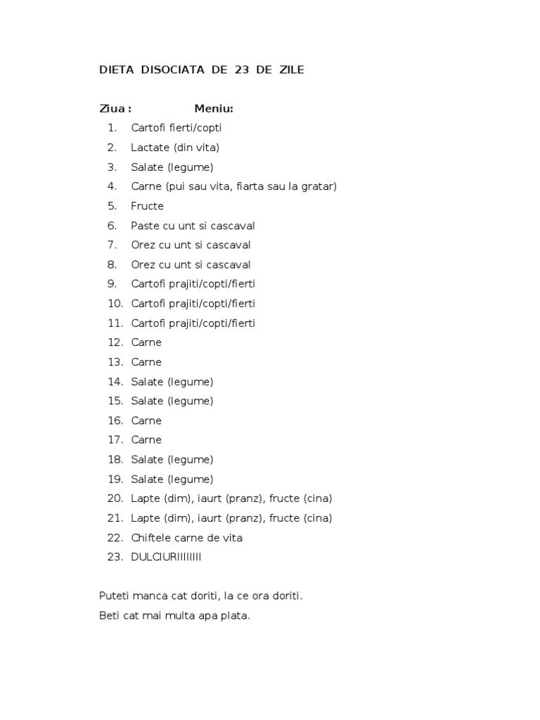 Dieta Disociata De 23 De Zile 1