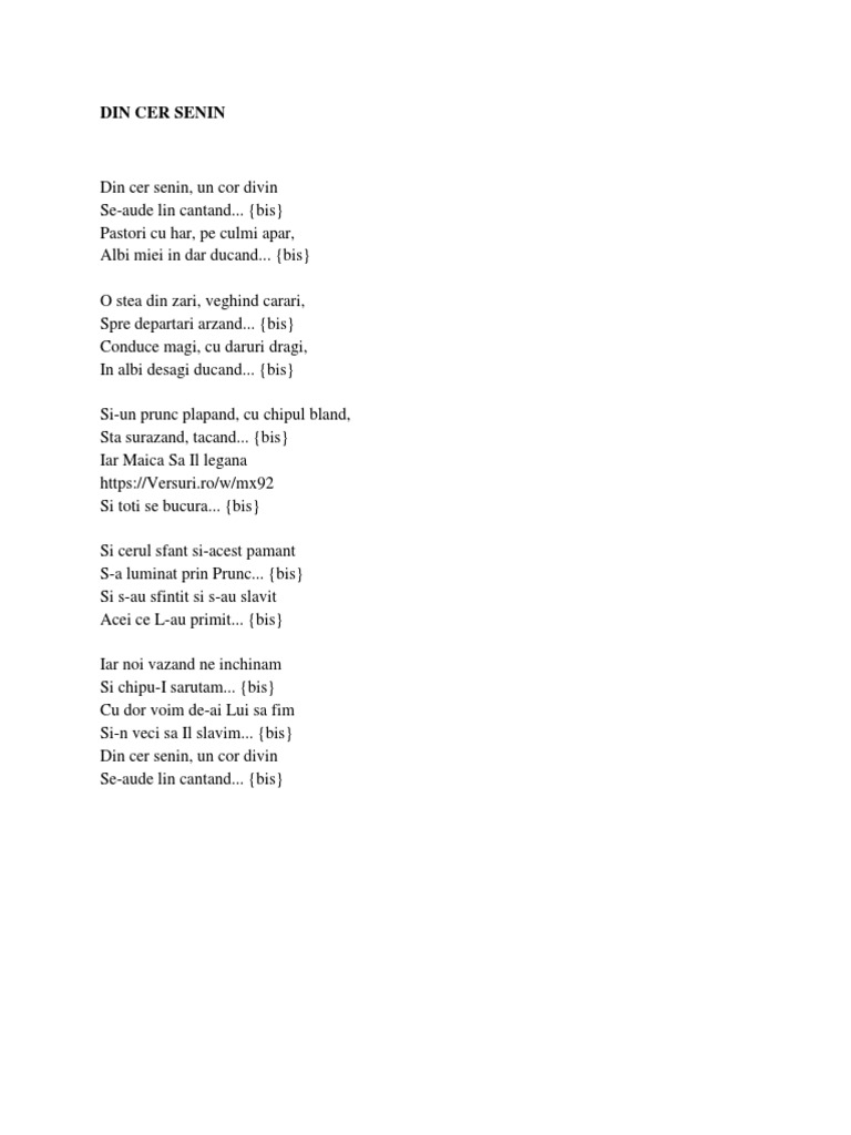 Din Cer Senin Versuri