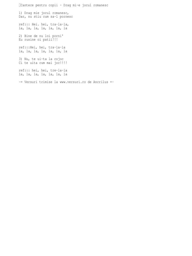 Cantece Pentru Copii Drag Mi E Jocul Romanesc