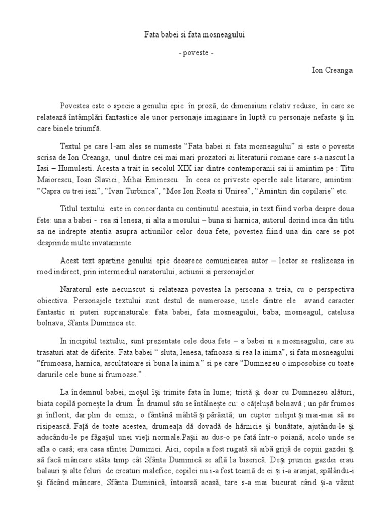 Fata Babei Si Fata Mosneagului Ion Creanga Pdf Carte Pdf Citești Instant