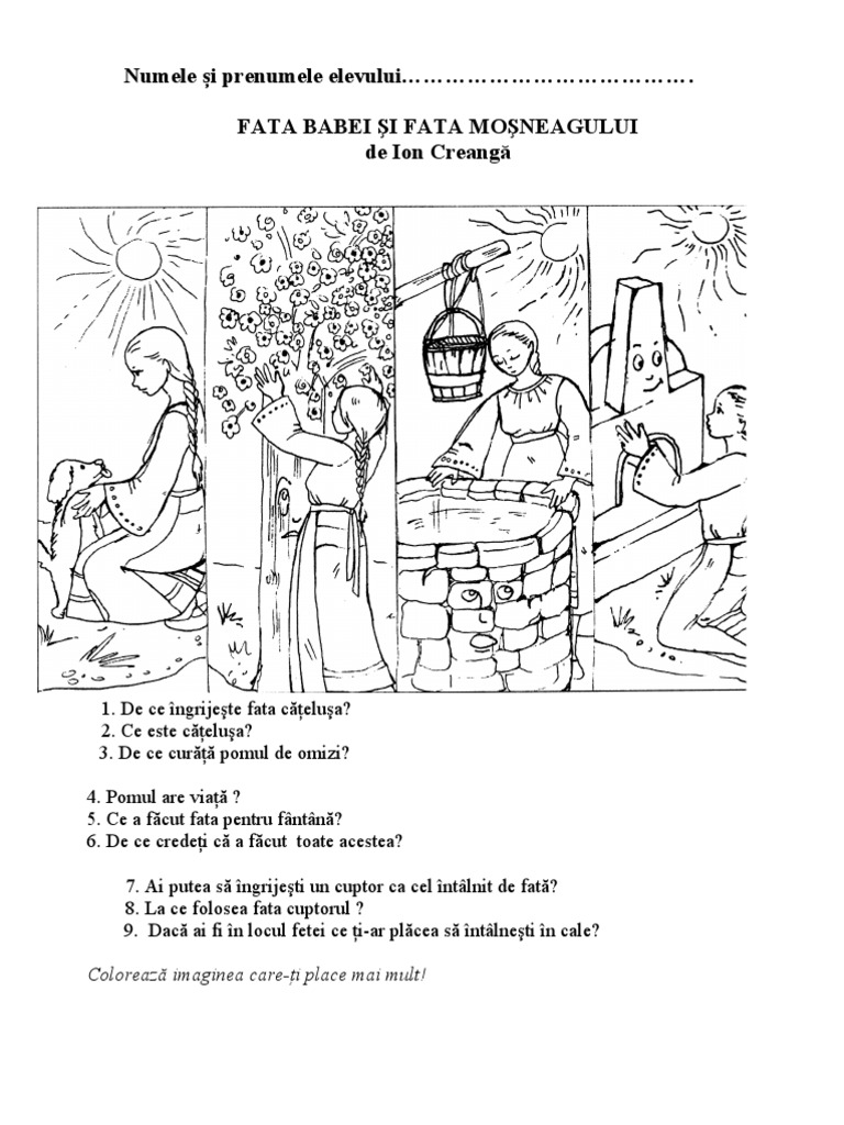 Fise Povestea Fata Babei Si Fata Mosneagului Pdf Document
