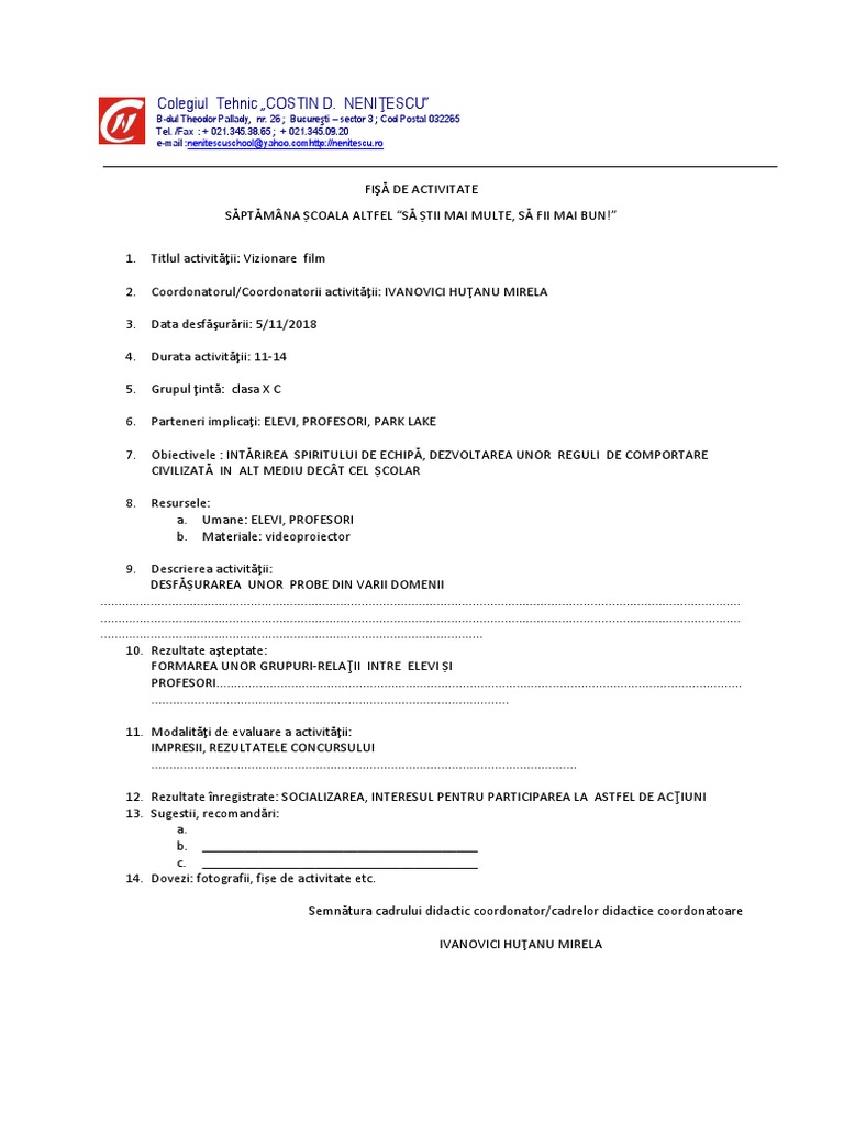 Fisa De Activitate Luni 5 11 Scoala Altfel Ivanovici Hutanu Mirela