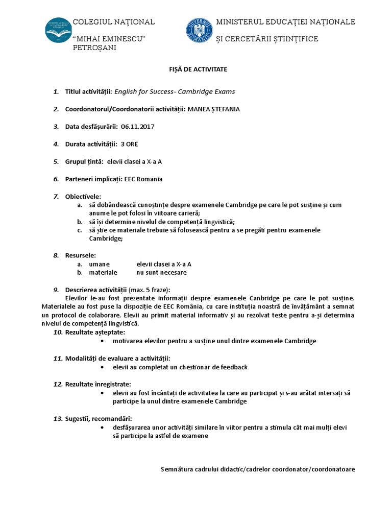 Fisa De Activitate Scoala Altfel 2017 2018 A1