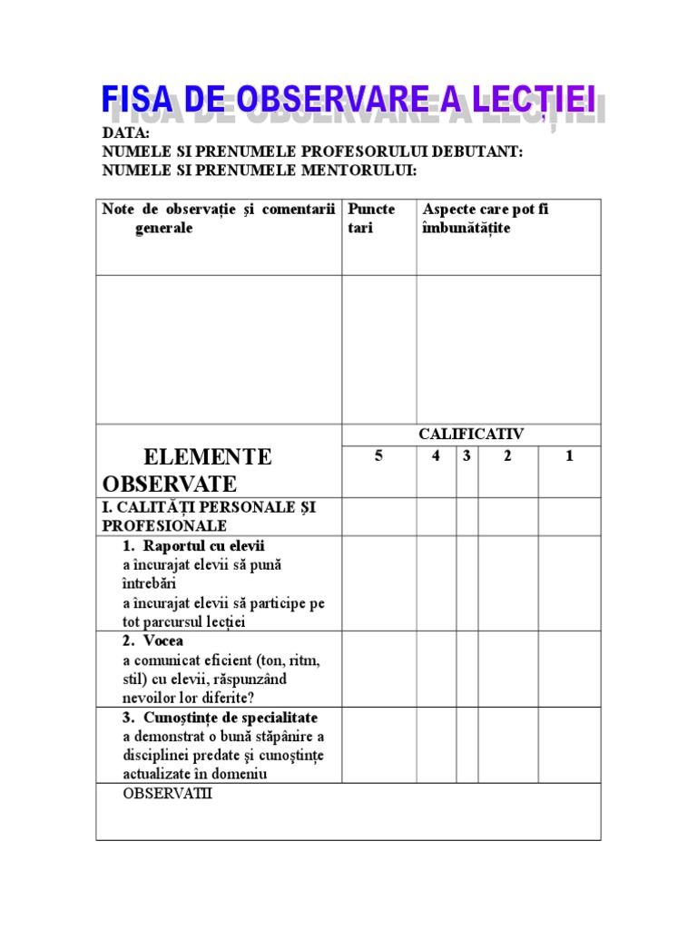 Https Ctnenitescu Ro Wp Nenitescu Wp Content Uploads 2017 04 Fisa De Observare Lectie Pdf