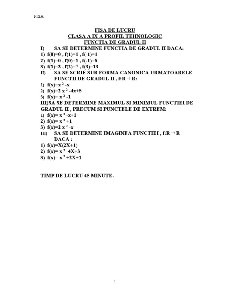 Fisa De Lucru Functia De Gradul Ii