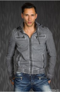 Jacheta Barbati Din Denim Prespalat Cu Gluga Si Fermoar Okazii Ro