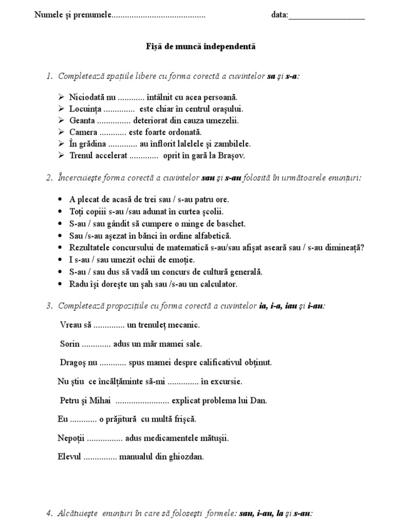 Evaluare Ortografie Sa Sau Ia Iau La Nea