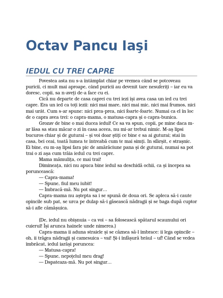 Iedul Cu Trei Capre De Octav Pancu Iași Povești Pentru Copii și