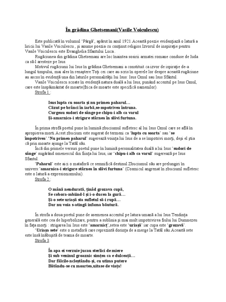 Referat In Gradina Ghetsemani De Vasile Voiculescu 327556 Graduo