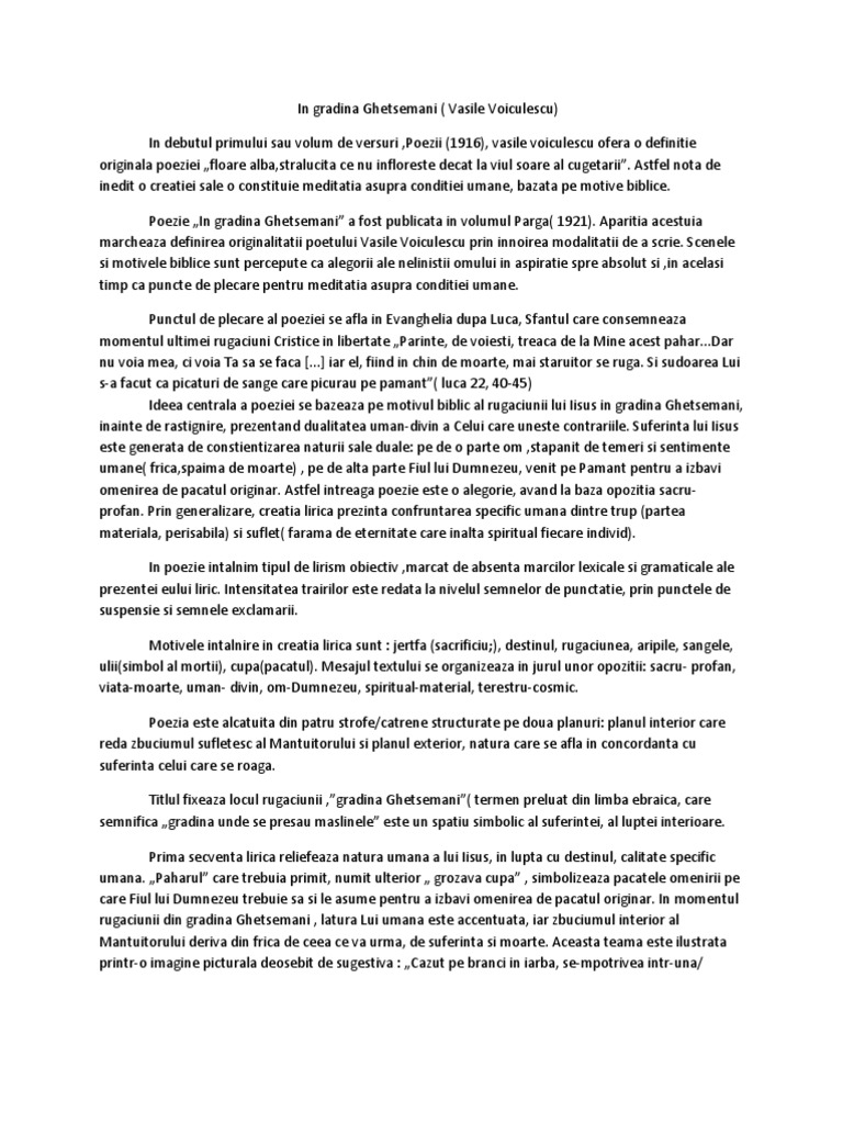 Referat Vasile Voiculescu In Gradina Ghetsemanii 330933 Graduo