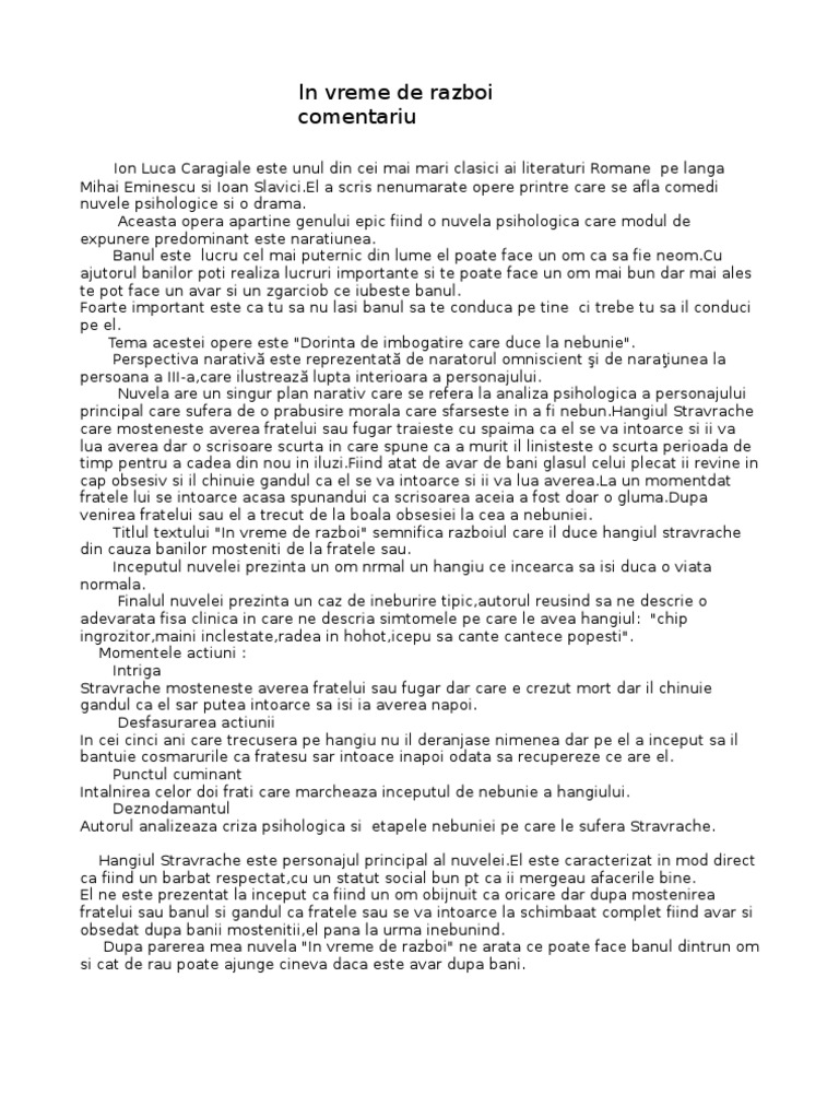 Comentariu In Vreme De Razboi De Ion Luca Caragiale 154030