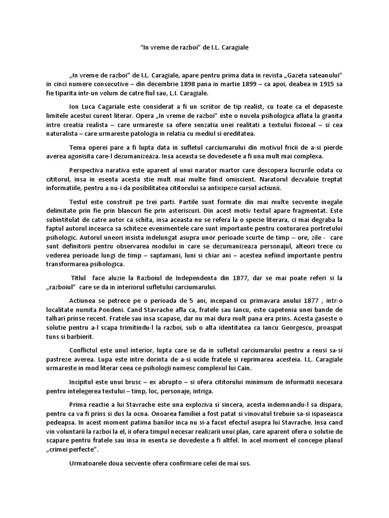 Referat Ion Luca Caragiale In Vreme De Razboi Comentariu